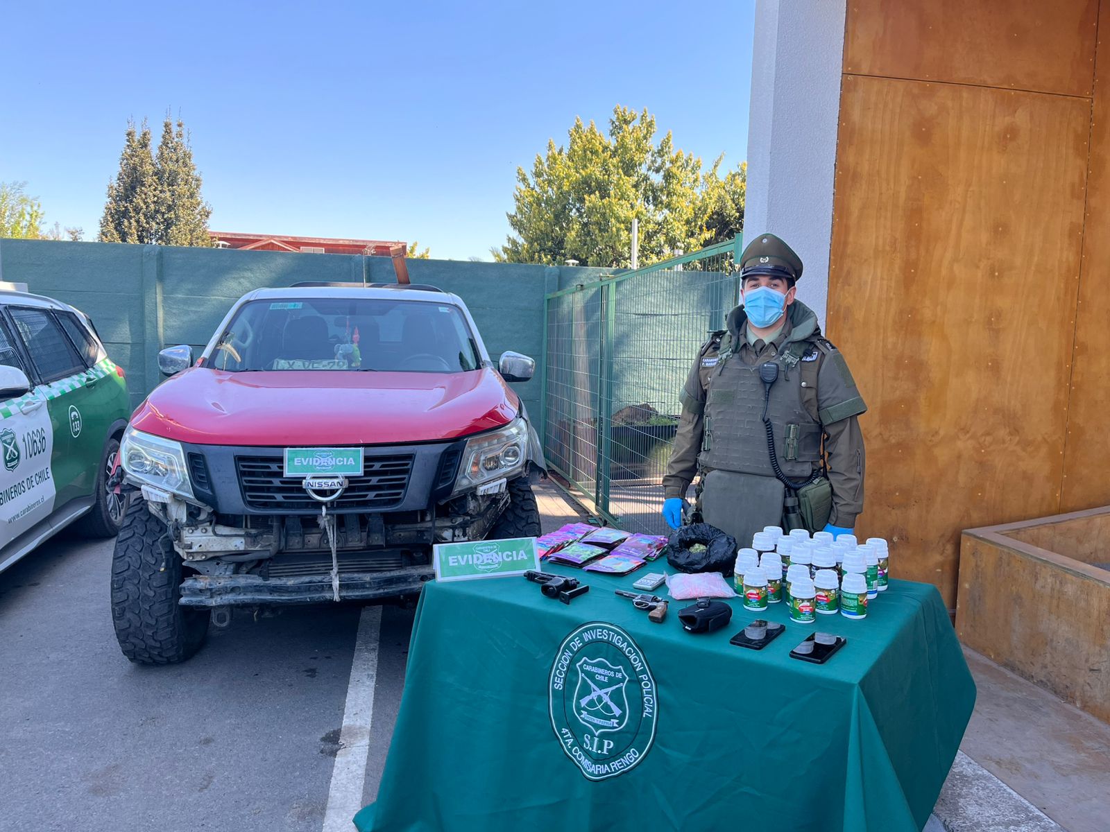 Con todos esos antecedentes y una orden del Juzgado de Garantía de Rengo, la SIP se trasladó hasta la comuna de Teno para ubicar y detener al individuo identificado como C.A.R.M., chileno, con antecedentes penales.